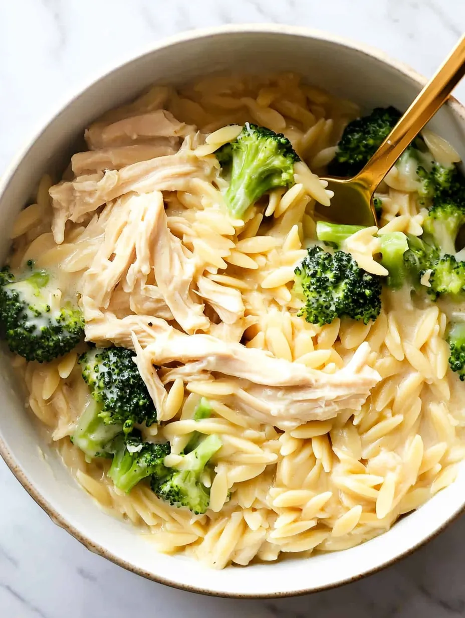 Un delizioso comfort food settimanale ti aspetta in questa meraviglia preparata in un solo tegame che unisce orzo tenero, pollo arrosto, broccoli freschi e formaggio cheddar filante. Questo piatto soddisfacente è pronto in appena trenta minuti e lascia pochissime stoviglie da lavare. La salsa cremosa e formaggiosa amalgama tutto splendidamente, rendendo questa pietanza un sicuro successo familiare che offre nutrizione e gusto in ogni boccone.