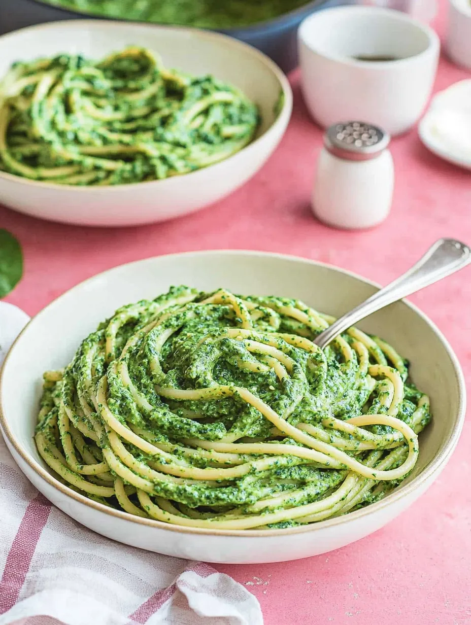 Questi spaghetti con spinaci cremosi si adattano perfettamente ai gusti personali. Per una versione più ricca di proteine puoi aggiungere ceci tostati o fagioli bianchi, che non solo saziano, ma offrono anche un contrasto di consistenza. Gli amanti dei sapori mediterranei apprezzeranno l'aggiunta di pomodori secchi e olive nere, che danno al piatto una profondità saporita. Per una versione più lussuosa puoi spruzzare un po' di olio al tartufo prima di servire, dando al piatto vegano una nota sorprendentemente elegante che lo rende degno di un ristorante.